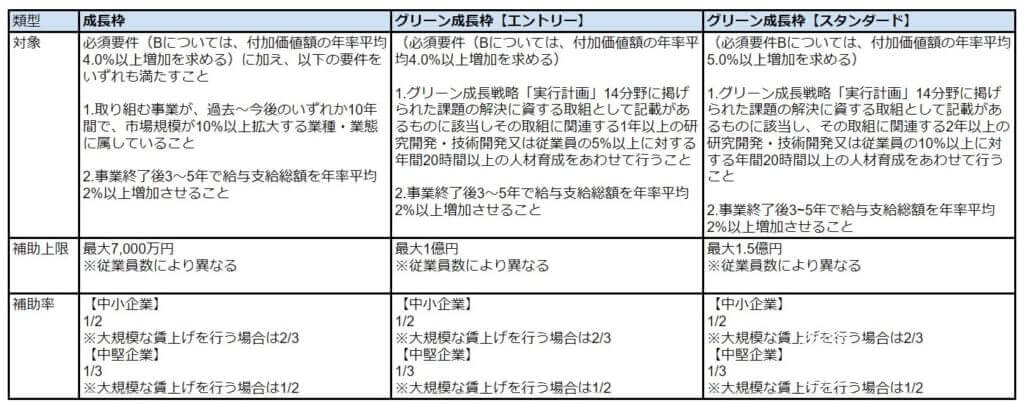 「事業再構築補助金」2023年度の各類型の対象・補助上限・補助率一覧 その1