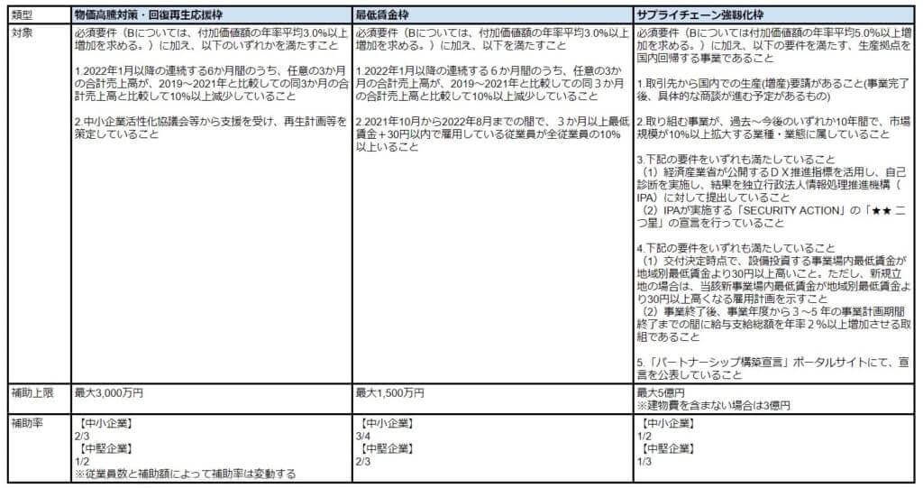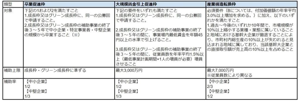 「事業再構築補助金」2023年度の各類型の対象・補助上限・補助率一覧 その3