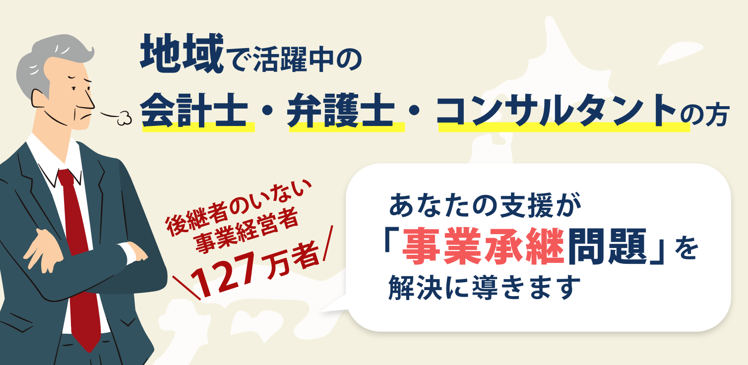 日本の中小企業の127万社の半数が後継経営者不在であり、今後10年間で多くの企業が廃業の危機に瀕していく未来が予想されています。そうした中「事業承継」が解決の一助として注目されていますが、地域に多い中小・小規模企業にとっては専門知識や複雑な手続きが必要となり敷居が高いのが現実です。