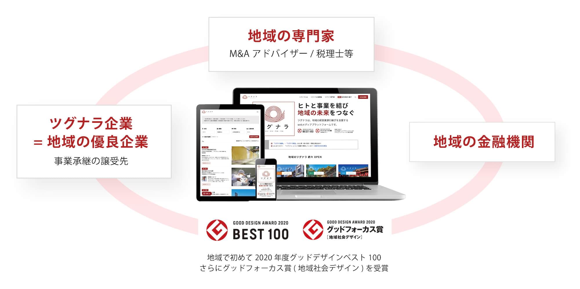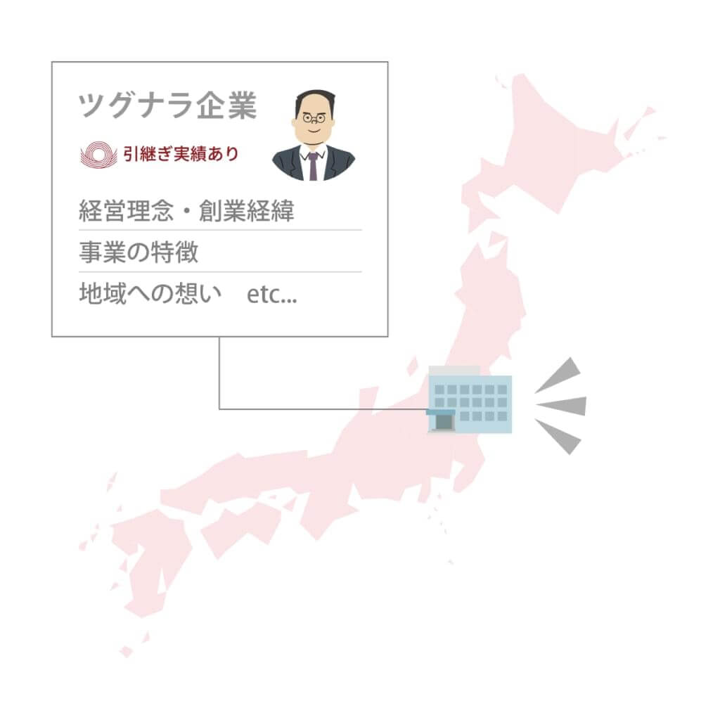 ツグナラは、売り手が一覧掲載されるのではなく、ツグナラに共感してくださる各地域の継承の担い手=買い手となりえる地域の優良企業をご当地企業(ツグナラ企業)として独自取材・記事化していることが特徴です。