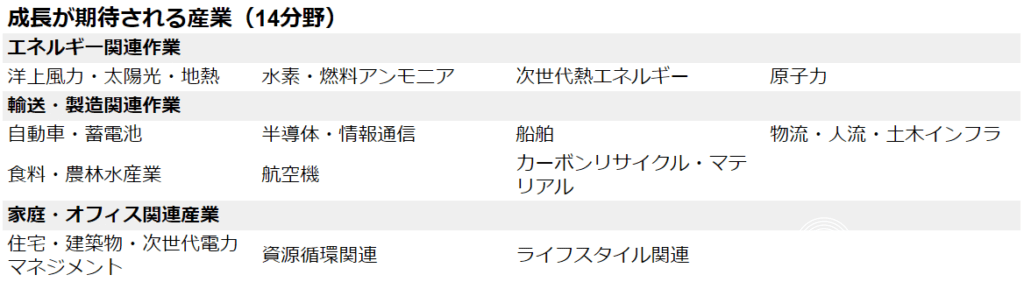 2020年10月に日本政府は、温室効果ガスの排出を全体としてゼロにする「カーボンニュートラル(脱炭素)」を2050年までに実現することを宣言しました。カーボンニュートラルの実現は決して容易なものではなく、産業構造の転換やイノベーションの創出など、国を挙げた取り組みを行う必要があります。カーボンニュートラルの実現に向けて注目されているのが、自動車・蓄電池産業や半導体・情報通信産業、資源循環関連産業などの「成長が期待される産業(14分野)」です。これらの産業を2050年に向けて成長・拡大させ、カーボンニュートラルの削減と産業競争力の向上の両立を目指そうという取り組みを「GX(グリーントランスフォーメーション)」と言います。